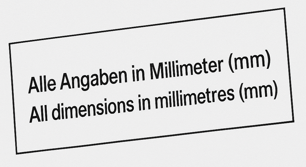 In technischen Zeichnungen gilt der Millimeter als implizite, abgeleitete SI-Einheit, gestützt auf ISO 80000-1 und ISO 129-1 – er muss nicht bei jedem Mass stehen, solange im Zeichnungskopf oder Dokument klar angegeben ist:
